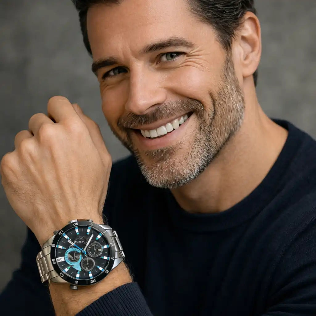 El diseño es brutal. Se ve fuerte, elegante y moderno. Siempre me preguntan por el reloj. Juan R., Bogotá ⭐⭐⭐⭐⭐